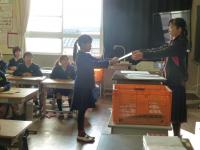 例年なら、体育館で全校が集まって行う集会ですが、まだ全校が集まることが難しいため、テレビ放送で発表をしました。