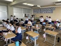 早速、お昼の放送で子どもたちへ紹介しました。同封されていた手紙を読み、「野球こそが、充実した人生を送る機会を与えてくれたスポーツである」から「野球しようぜ。」という大谷選手からのメッセージを伝えました。そして、本校の野球部に所属している3人の児童に代表でグローブをはめてもらい、感想を聞いてみると「軽くて使いやすそうです。」「中のクッションが柔らかくてボールが受けやすそうです。」とうれしそうに答えました。