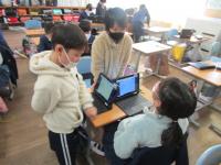 探検で見つけたものや分かったことをタブレット端末のロイロノートを使って分かりやすくまとめています。