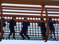 午前中降っていた雨も止み、昨日とは逆に1組と4組がニュースポーツとクライミング、2組と3組が野外炊飯を行っています。