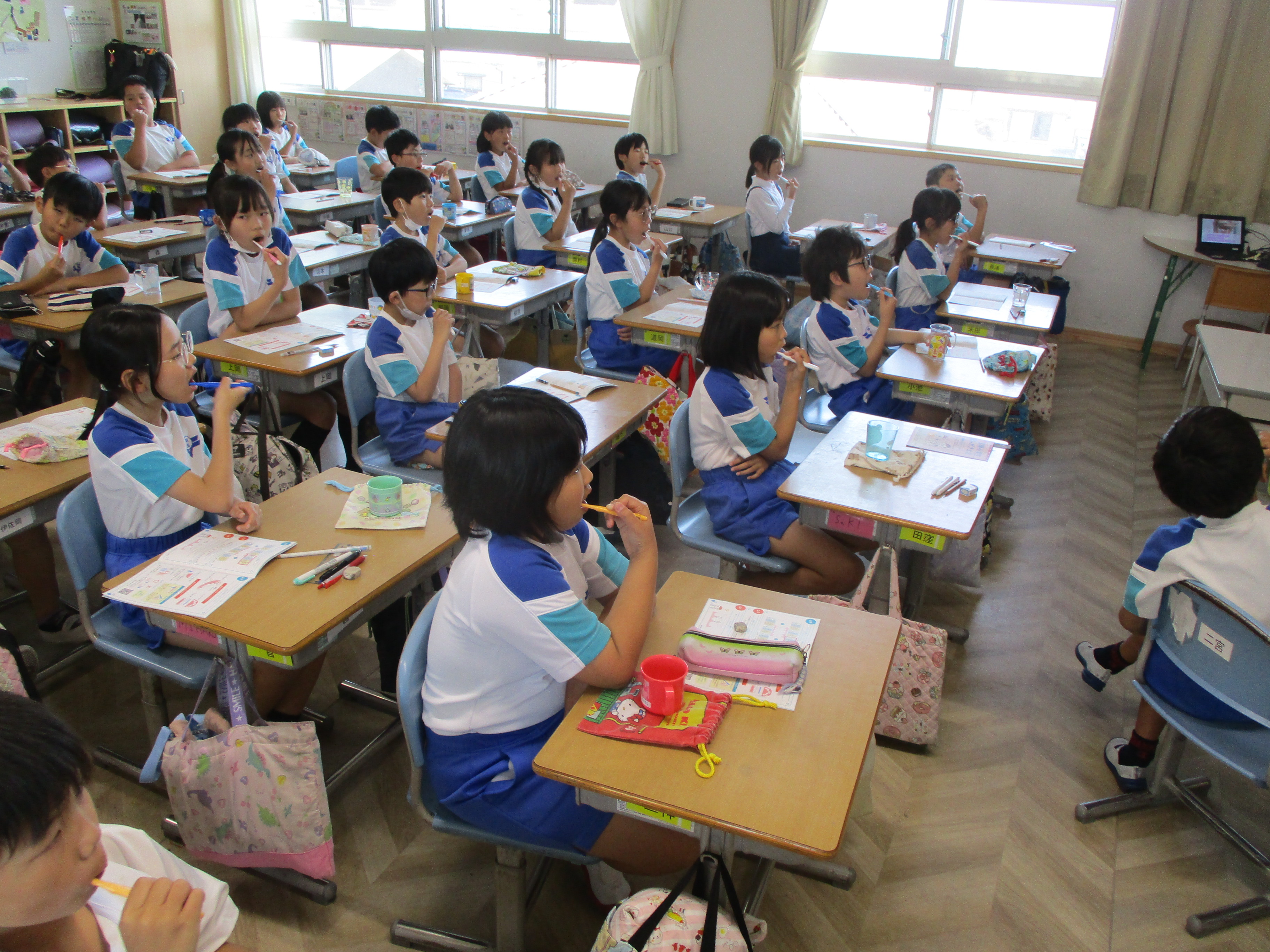 4年生 全国歯みがき大会 2025年6月4日 17時48分 今日、4年生は、「全国歯みがき大会」に参加しました。歯肉炎は歯みがきでは歯間の汚れを取り除くことが難しいことなど、動画を通して学びました。口の中に潜む菌の多さなどに驚きの声を上げながら、丁寧に歯をみがき、口の中をきれいにしたいという思いをもちました。正しい歯みがきで、ピカピカ笑顔を続けていきましょう。